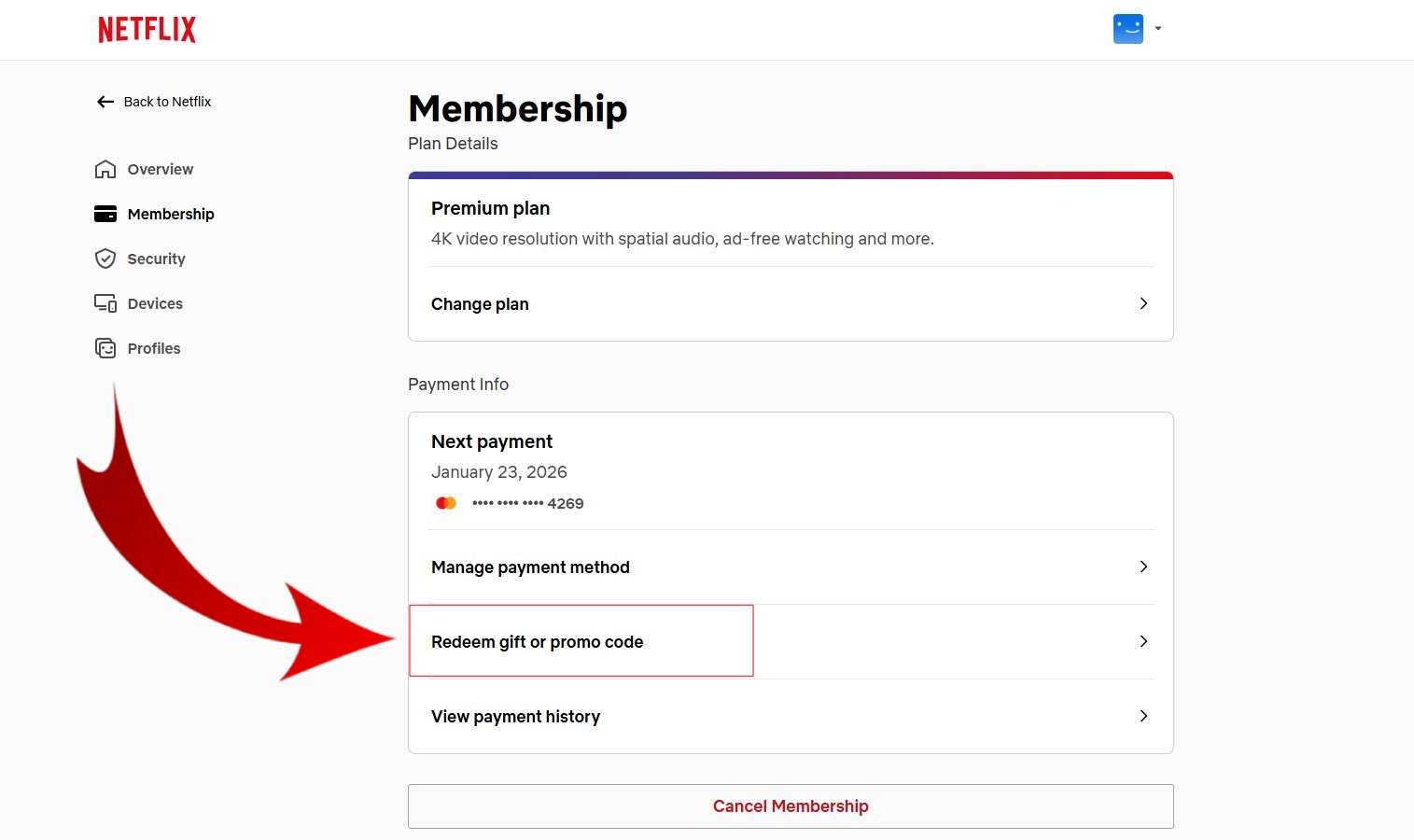 FinishEnter your code and redeemOn the Redeem page, enter your gift or promo code and confirm by clicking Redeem.